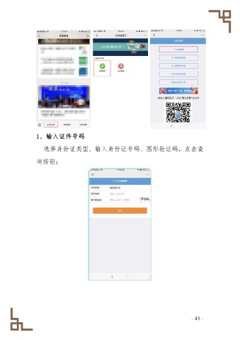 1、输入证件号码 选择身份证类型、输入身份证号码、图形验证码,点击查 询按钮; - 43 -