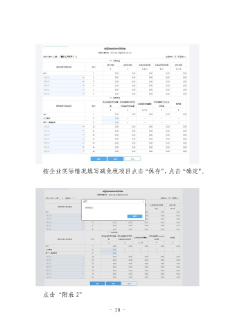 按企业实际情况填写减免税项目点击“保存”,点击“确定”。 点击“附表 2” - 10 -