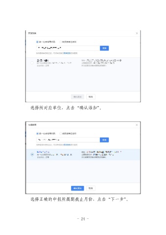 选择所对应单位,点击“确认添加”。 选择正确的申报所属期截止月份,点击“下一步”。 - 24 -