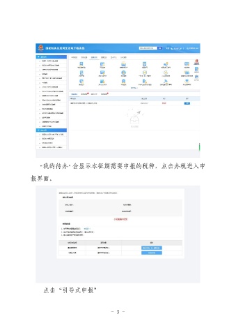 “我的待办”会显示本征期需要申报的税种,点击办税进入申 报界面。 点击“引导式申报” - 3 -