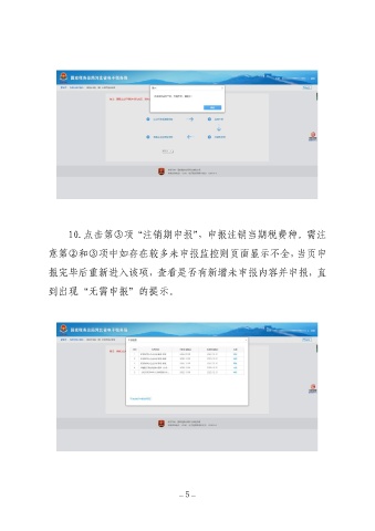 10.点击第③项“注销期申报”,申报注销当期税费种。需注 意第②和③项中如存在较多未申报监控则页面显示不全,当页申 报完毕后重新进入该项,查看是否有新增未申报内容并申报,直 到出现“无需申报”的提示。 —5 —
